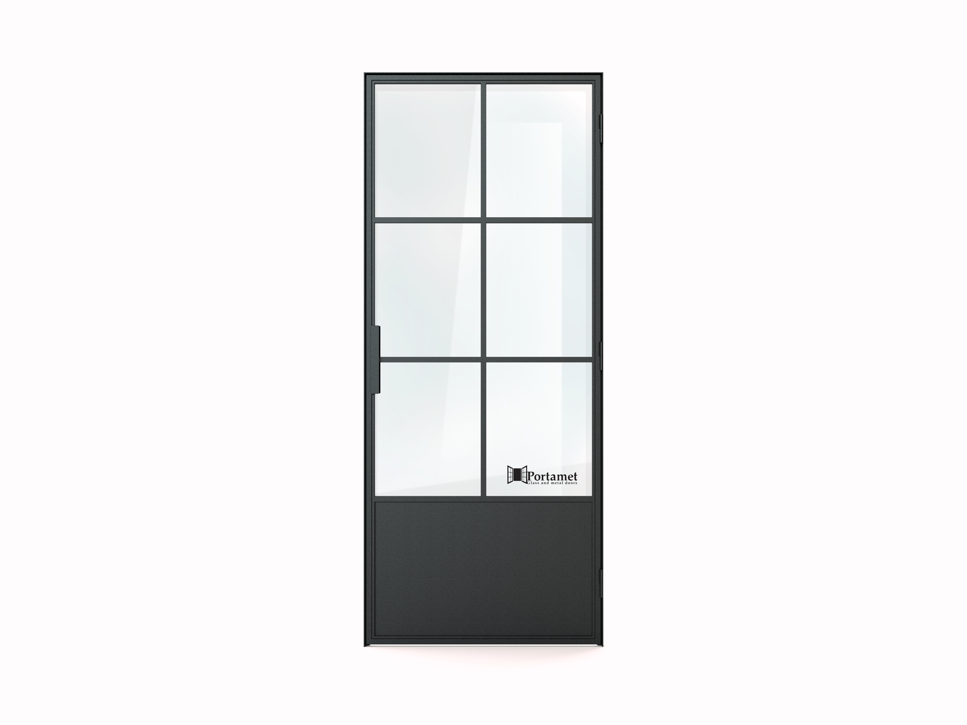 Das Modell Portamet Barcelona ist eine klassische Lofttür im 2x3-Design, mit einem festen Paneel unten.
